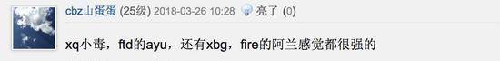还有网友表示除了上诉的这八位,其实还有一些选手还不错的,比如xdd、XQ战队的小毒,还有ftd的ayu,还有xbg,fire的阿兰感觉都很不错,楼主为什么没有给他来一句呢?