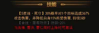 【五星技、死守】对单体目标造成367%的攻击伤害,并且降低自身15%所受的伤害,持续3秒。