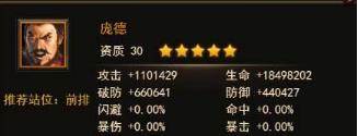 庞德,攻击110W,生命1849W,破防66W,防御44W。作为一个前排拥有优秀的血量十分不错,但是防御值其实很低的。