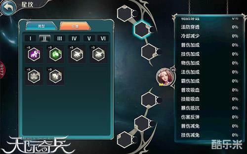 在《天际奇兵》当中,在“星纹系统”激活之后,每位英雄身上都会出现I-VI六个位置的星纹装配槽位。这六大星纹装备槽位,可以镶嵌特定类型的星纹,从而让英雄获得力量、敏捷、智力以及暴击伤害、物防穿透、冷却减少等超多强悍角色属性的加成