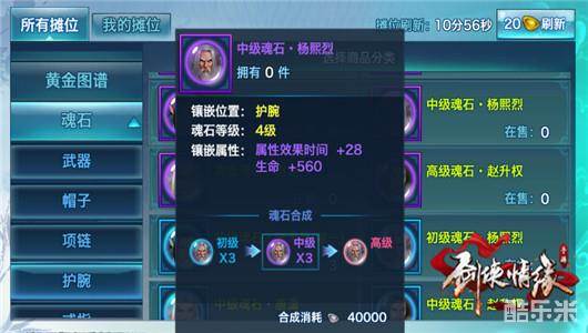 中级魂石·杨熙烈,魂石等级:紫色4级,属性效果时间28、生命560。