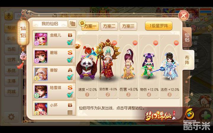 相对于兵刃阵而言星罗阵的打法较为稳妥:1号位圣巫玩家位置锁定,提高速度获取第一出手机会,封印对方火力;2号位放置普智,受伤害减少提高自身生存率不断的将倒下的队友复活让其持续输出;3、4号位金瓶儿与碧瑶可替换位置,毕竟两个仙侣实际的战斗力都非常不错,5号位的法伤加成则无条件给予陆雪琪。