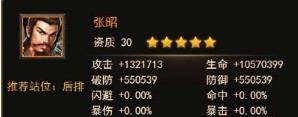 总结一下就是张昭的输出不是很高,防御依靠技能。因此这个角色还是推荐放在后排,这样子可以防止对手刺客角色造成的翻车。