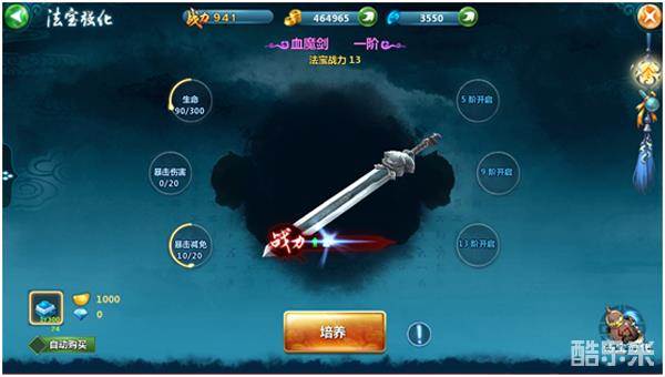 在法宝界面,可以对你的法宝进行培养。
