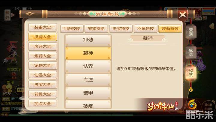 特效可以说是可遇而不可求的存在,而对于天音玩家来说适合的特技有以下几种:毁灭、孤注、不顾、裁决、仇恨、破魔、威慑以及摄魂。然而随着封印的崛起,增加封印命中率的特技也同样适用(凝神、结界、专注),毕竟全程怒魂引对付法系输出门派还是极其恶心的。