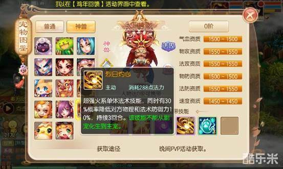 这就是可望而不可及的神兽日精灵了,强大的法系单体输出技能,没有任何副作用,唯一不足的便是如果不触发暴击的话没有上面两种的爆发高,可胜在输出能力极为稳定,并且神兽资质成长非常高,有条件的土豪可以试着追求一下。