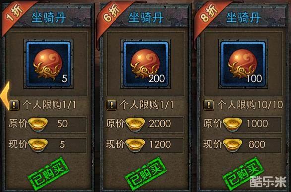 5:在开服活动过后,在特惠活动限时商店中会定期出现特价坐骑丹,元宝购买可以获得大量坐骑丹。