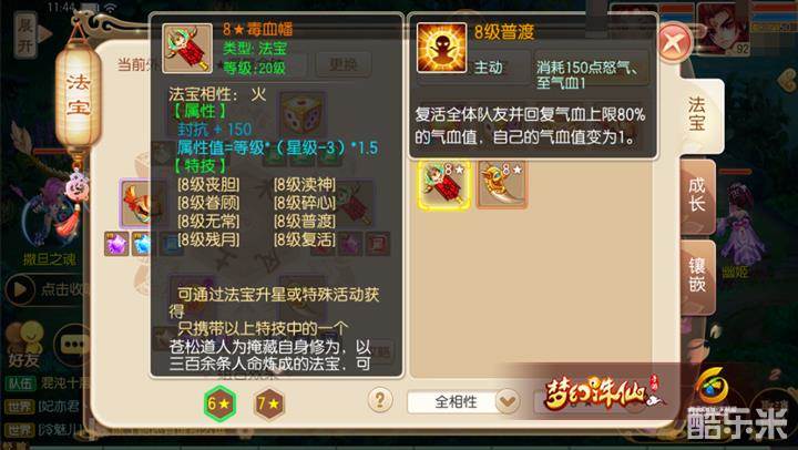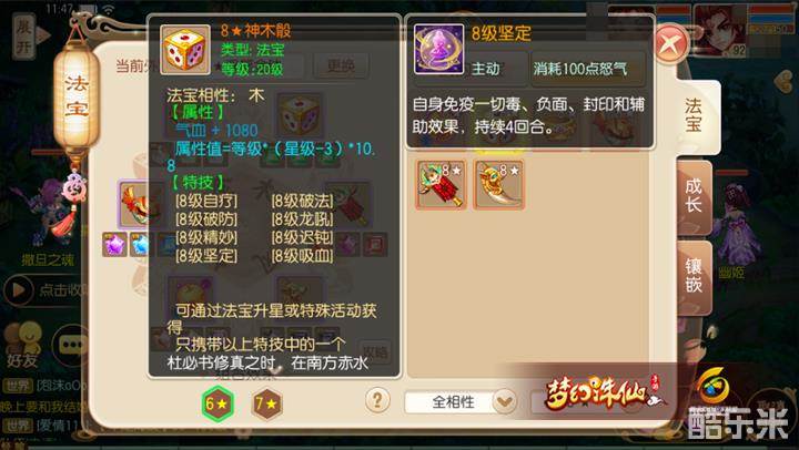 能够提升物防属性的轮回珠也是值得玩家重点升级的法宝,不过在特技方面也就只有“乾坤”效果较为可观了,但是奈何“乾坤”的特技施展条件有限且拥有难度较高所以这里推荐使用轮回珠的“隐遁”特技:在竞技对抗中如果对方没有反隐能力那么一个隐身还是很有可能让玩家翻盘的!