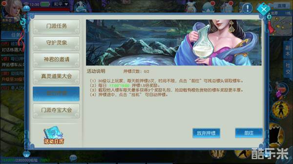 当大家把以上几项经验产出项目都做了后,千万不要忘记,游戏里还有镖车护送任务,拉镖同样产出不菲的经验,每天可以参加两次,在系统规定时间内,收益还会达到1.5倍之高。