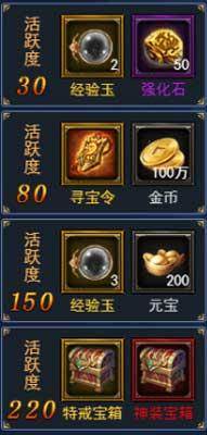 这个地方就是活跃度的宝箱了,30活跃度解锁经验玉2个,强化石50个。