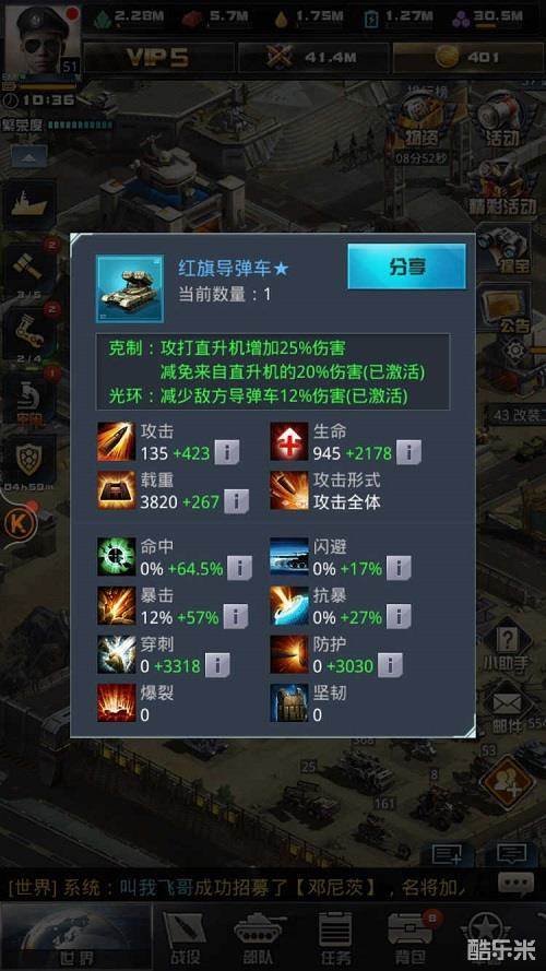 导弹是力量的输出,攻击是他的使命,所以导弹的攻击要跟着指挥官级数走,剩下的坦克攻击,导弹生命,适当加点,超过闪避和抗暴一点点就可以了,飞机和特种兵请放弃。