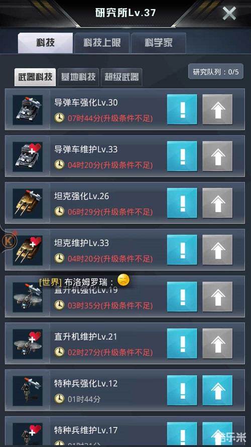 科技,这就不用多说了把,能提高的绝对要提高,主要还是为坦克和导弹服务,这两兵种的科技不能停。
