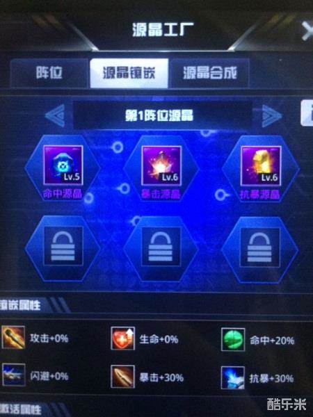 1.设置好源晶位置!所谓好钢用在刀刃上!合成最好的圆晶放在最需要的位置上!我把圆晶好的放在1和5号位!放5号是因为很多矿都有飞机所以4号我放了光环!5号和1号放导弹以便炸矿。