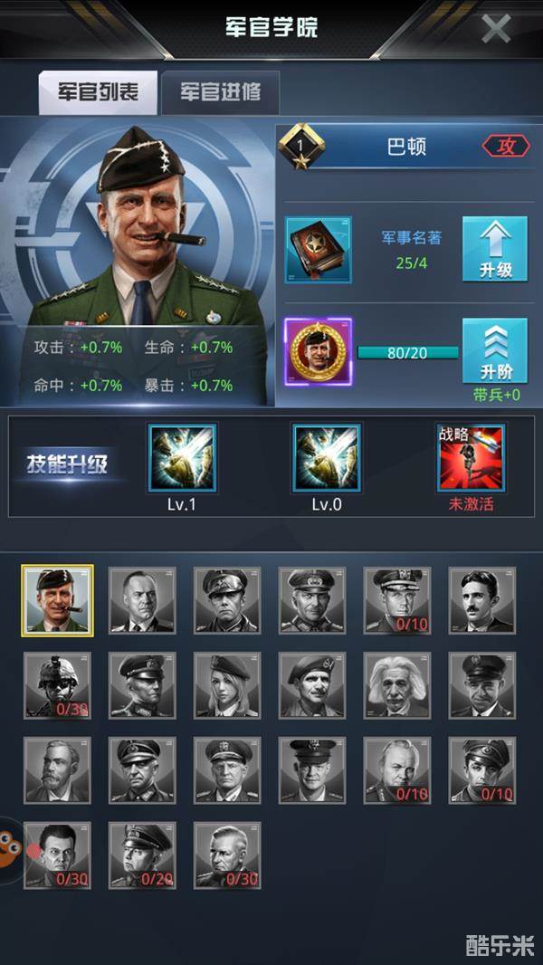 战斗类军官都是二战中赫赫有名的将领:巴顿,布莱德雷,隆美尔等等,在这里他们都自带专属技能,能让军团的作战能力得到质的飞跃。
