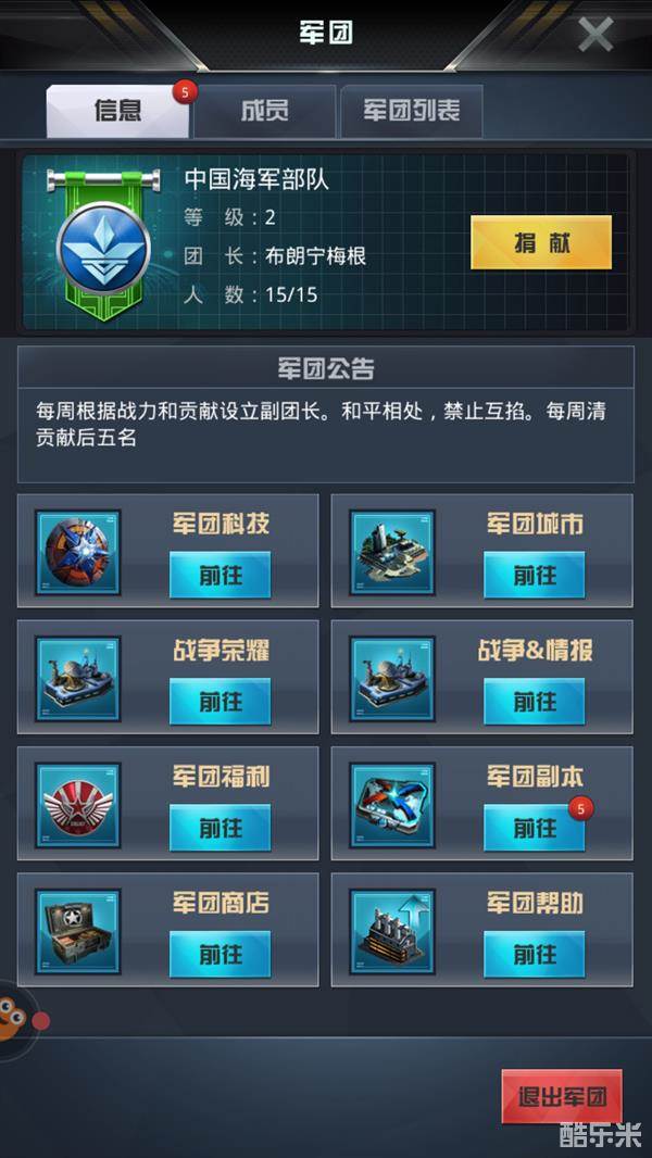 最后,我们再来看下这款游戏中最有趣的玩法--团战。想要参加团战,我们必须先加入一个军团。该游戏军团以小军团为主,创立之初只能容纳15人,升级之后会提高容纳人数。军团虽小,但是功能还是非常齐全的:军团科技能提升作战能力;军团福利和商店能获得大量资源;军团副本则可以和军团好友一起并肩作战;军团帮助可以帮助他人加快建筑升级速度;除此之外,其他更多功能等你亲身来体验。