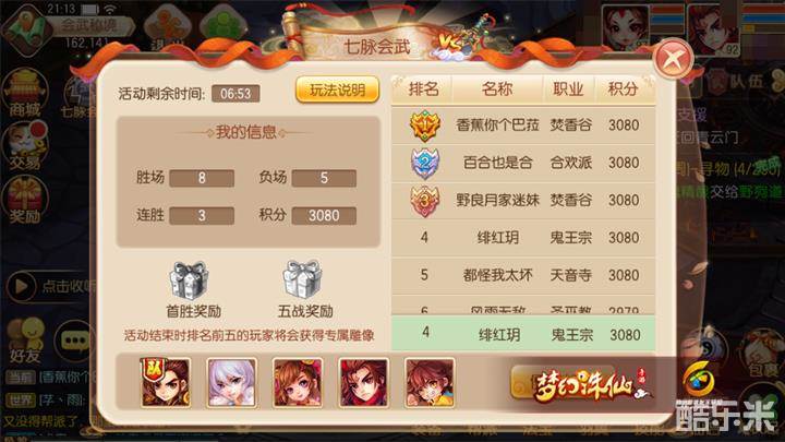 玩家想要在七脉会武中取得好成绩并不一定要场场都胜,只要队伍能够在活动时间中尽可能的多胜几场战斗那么积分自然不低,所以玩家在遇到不能敌的队伍时大可不必挣扎放弃抵抗,输的快也是一种战术!虽然在七脉会武中只有前五名玩家能够获得雕像奖励(大多数玩家不必考虑),但前20名玩家奖励的日精灵碎片还是可以争取的,毕竟价值3万金币的日精灵碎片也是笔可观的收入!