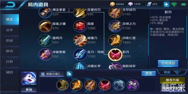 闪电匕首既可以增加梦奇的移动速度又能让梦奇获得暴击和攻速加成,其被动提供的爆发还享受梦奇高额的物理攻击加成,非常适合梦奇。