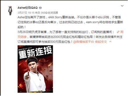 昨天,前LPL选手Ashe佳怡宣布加入4AM战队,转型绝地求生项目。加入4AM后的ID为4AM.Sorry。熟悉英雄联盟LPL的玩家对这名选手一定不会陌生。S5爱射佳怡曾和UZI同在QG战队并且UZI还是他的替补。他的EZ堪称绝活,曾为队伍立下汗马功劳。