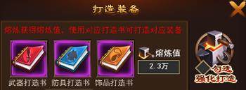 三种不同的装备是需要三种不同的打造书的,而玩家可以通过熔炼来累计自己的熔炼值。