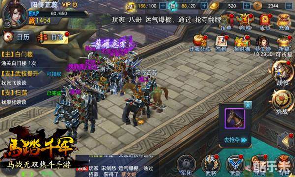 再者便是随时地升级自己的角色、战马以及武将,更不要不携带战马和武将,有了他们的辅助,战斗会轻松很多很多。
