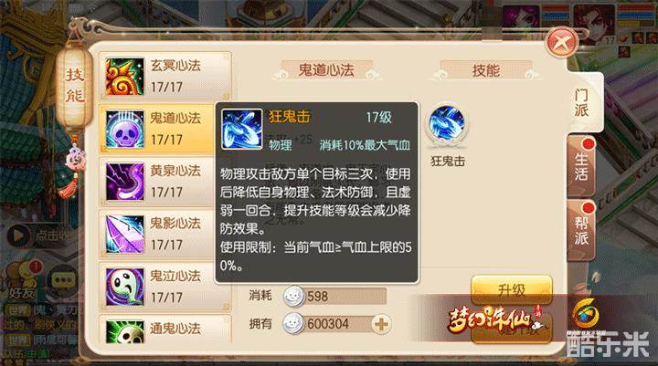 有一点需要注意的是鬼王宗这个门派,释放技能时需要的是百分比的气血值以及一定气血上限才可以释放。