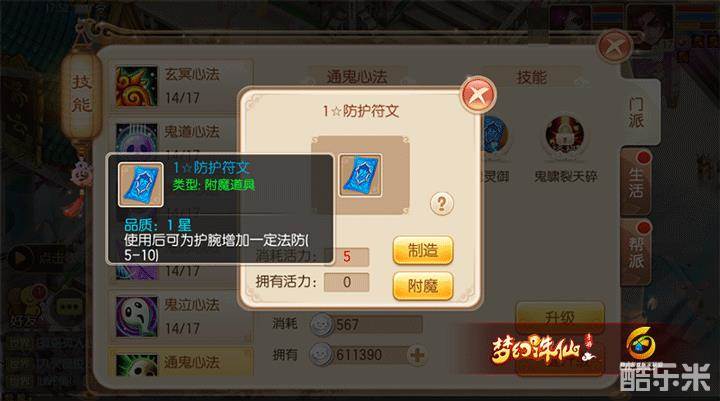 在梦幻诛仙中每一个门派都具备了一个门派附魔技能,而鬼王宗的门派附魔技能鬼灵御则可以在一段时间内给装备增加一定的法防,具体数值随着等级的增加而增加。