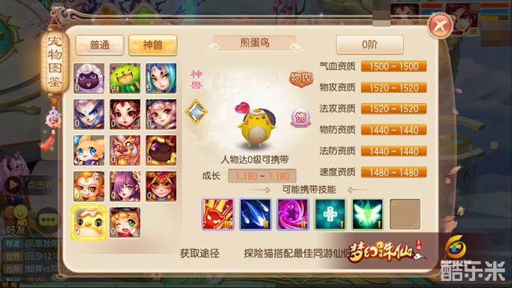 作为神兽的煎蛋鸟由于满资质的特点所以在入手后无需使用炼骨符和灵兽果进行二次培育,不过与其它神兽相比煎蛋鸟的各项资质上限有些欠缺,但攻击资质(1520)和速度资质(1480)还算不错,所以拥有煎蛋鸟的玩家可以将其当做隐攻宠来培养,至于天生技能中并没有什么有价值的技能存在,这里也就不建议玩家进行铭记了!