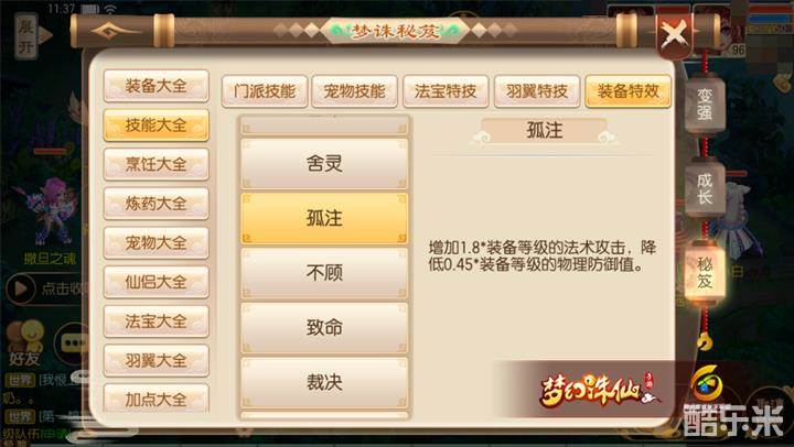 之前说过焚香是注重输出的门派,所以对于特技的选择依旧是那些增加伤害的技能为佳,诸如孤注、不顾、裁决、御魔、翻江、踏海的效果都不错。