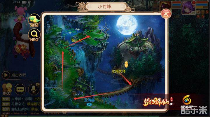 第五关用的是小竹峰的地图,手动路线与寻找NPC路线相同,BOSS狻猊在张小凡3字的右上方。