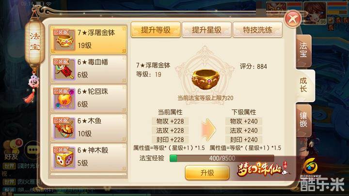 由于浮屠金钵的获取途径较少,所以在培养浮屠金钵时还是建议玩家通过同级喂养的方式来提升法宝星级,毕竟星级越高的法宝其经验也就越多,而同级喂养的方式可以有效解决素材不多的尴尬局面,只不过此举会带来不小的经济负担。至于浮屠金钵的等级也需同步进行提升,相信届时玩家对于它提供的属性加成一定会十分满意。