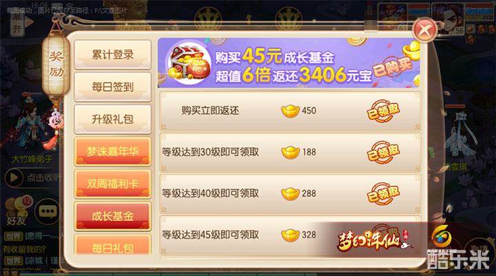 至于购买了成长基金的玩家当等级达标后即可获得对应元宝奖励,总计3406的元宝正如活动介绍的那样真超值6倍返还,可以说二者都属于性价比极高的充值项目,对于想要玩好的玩家来说自然推荐购买。