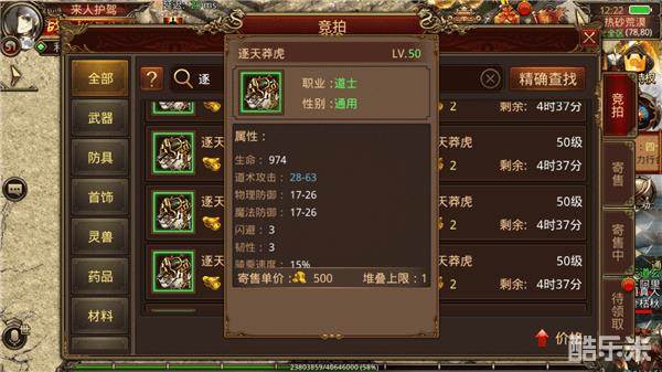 建议大家考虑下拍卖行,这里可以买到各种极品莽虎,一般都是两个元宝,大家随便都可以买一打!