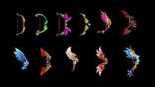 40级武器(舞蝶弓):取冰蝶舞动之意境炼制而成,轻盈灵动,附之以意念,可控制射出之箭的行动轨迹。