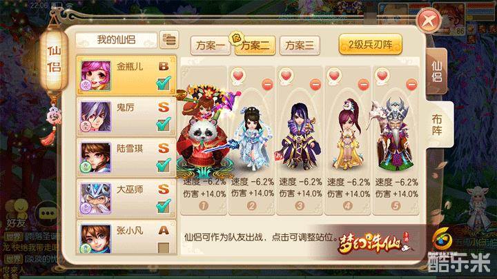 兵刃阵对于仙侣站位没啥要求,毕竟所有位置都是增伤减速的,这里玩家也不用担心冰刃阵的减速效果使得BOSS先于玩家进行攻击。此时玩家与大巫师双封组合可以有效限制住BOSS的行动,而拥有法术连击效果的陆雪琪在输出方面表现不俗,至于频繁释放乱鬼斩的鬼厉依靠自身特技也能打出海量的伤害,虽然上阵的金瓶儿在伤害方面一般但其拥有的强迫效果可以起到半限制效果。