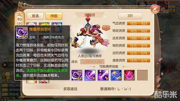 神兽作为梦诛里顶尖的宝宝,在化生技能时也要有较高的选择(9技能最低),而傀儡师的特技物理群攻,可以培养成一只物攻输出宠,适合平常任务或者挂机,技能推荐如下: