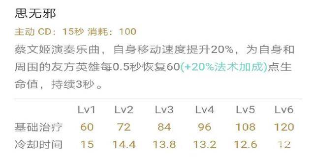 解析:一技能是一个持续性的群体回复性技能,能够瞬间回复高额血量,所以对于释放时机有着一定的要求。不能够等到队友血量过低的时候才释放,那样有可能还没有回复起来血量,队友就被击杀了。在改版中同样提供了一技能的法术加成,使得蔡文姬做法术装备的收益更高。团战时一技能的收益非常高,在团战释放时,一定要在队友尽可能多的时候使用,来最大化收益。一技能提供的加速效果,也能让蔡文姬更快的赶到残血队友附近。