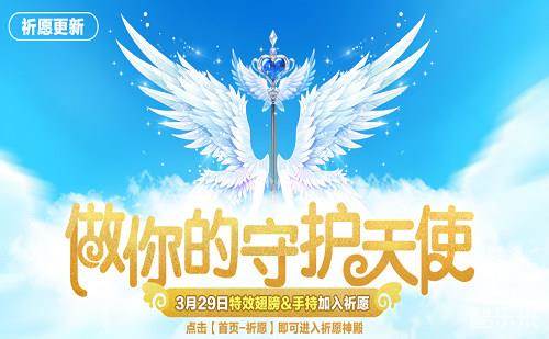 作为福利活动的常客,星愿礼盒又双叕更新了!从3月29日开始,无情之翼和冥王之令下架,全新手持翅膀“神之祝福”和“神之权杖”震撼登场!直到4月1日愚人节当天,每天登陆就送祈愿符,祈愿成功率提升25%,就怕你不来!