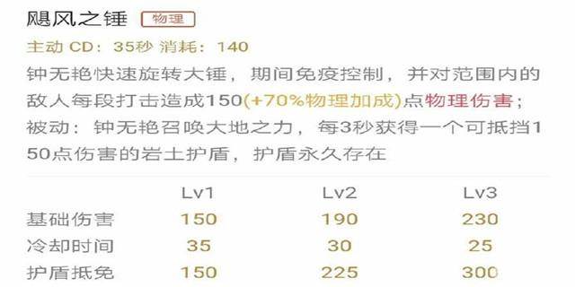 解析:大招的多段伤害能增加触发被动石化的概率,但范围比较小,尽量在用1技能深入到敌方阵营之后再释放大招。被动不断刷新的护盾略微减少了敌人的消耗技能对钟无艳的影响。