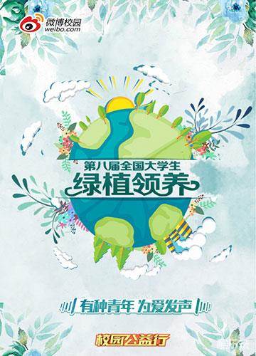 第八届全国大学生绿植领养活动由新浪微博校园联合共青团中央学校部主办,从3月12日到5月14日,面向全国上千所知名院校举行。号召大学生在线上领养虚拟绿植,在线下免费领取种苗进行校园种植,为母校留下绿荫,为城市带来绿色。