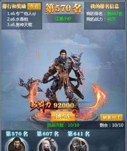 这里就是竞技场的主界面了,可以在这里看到自己的战斗力与排名。以及可以匹配到的对手的排名以及战斗力。然后就要根据敌我战力进行考量,要选择谁与自己对战了。