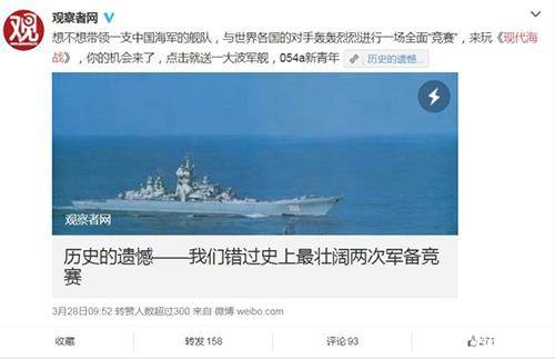 在军事迷中赫赫有名的互联网军事节目《军武次位面》称赞《现代海战》给玩家带来不一样的体验,号召广大军事爱好者一起来感受体验,更令人兴奋的是,游戏开服恰逢中国海军在南海进行联合军演,边玩游戏边看军演,让你沉浸在海战的魅力中。