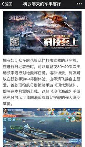 科罗廖夫更是一针见血的指出《现代海战》充分展示了我国海军航母辽宁舰的强大海空威慑力,游戏无论作战方式或舰队列队,都最大限度呈现真实场景。