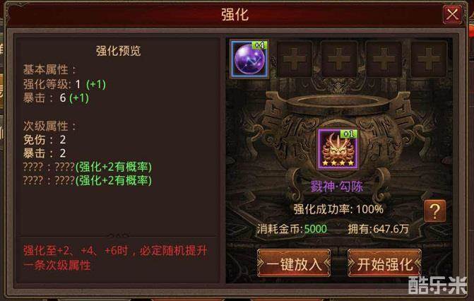 强化不仅可以提升命星基础属性,在+2、+4、+6时还会随机选择一条次级属性进行提升,次级属性可以多次提升,不受提升与否限制;