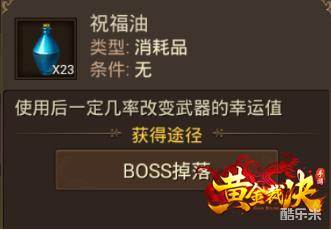 祝福油是传奇品类游戏经常出现的物品,与武器的幸运值相挂钩,只有通过击杀boss捡取掉落物品获得。