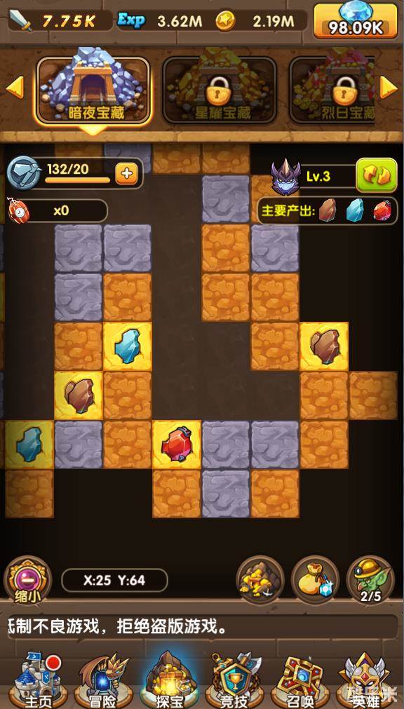 耐久则是挖掘的次数,可以用钻石增加上线,挖掘次数每2分钟恢复1次,萌新有条件可以多开一点,睡一觉起来就有一两百的挖掘次数。右边有重置矿区,挖矿会随机遇到恶龙守卫,打了之后有几率出现红龙之鳞(用于觉醒和突破)、经验和增加主角的战力三种奖励。恶龙守卫打一次会增加一级等级,会越来越强,当你场上有一个恶龙守卫的时候挖掘次数就会增加1,比如有三个恶龙守卫,挖掘一次就需要4个矿铲,因此当打不过恶龙守卫的时候重置矿区就很有必要,矿区直接恢复到初始状态。