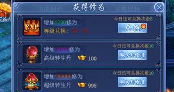转生是需要消耗一定的修为的,修为可以通过降级以及使用转生丹来获取,随着转生次数的增加,需要的修为数量也是大大增加。