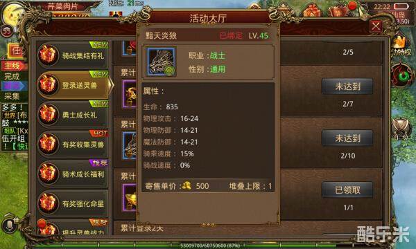 限时活动登录送灵兽