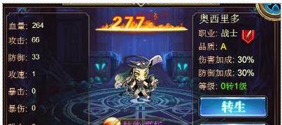 奥西里多,职业:战士,品质:A,伤害加成:30%,防御加成:30%,等级一级。