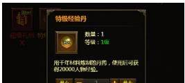 最后呢小编要说的就是一些辅助性的道具了,比如说经验丹,就可以为玩家提供大量的经验值,升级自然就会变得更加轻松
