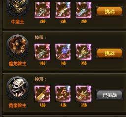 首先最为常见的就是个人BOSS了,这里的BOSS玩家每天只可以挑战一次,掉落对应等级的装备,玩家有机会可以得到橙装以及碎片。